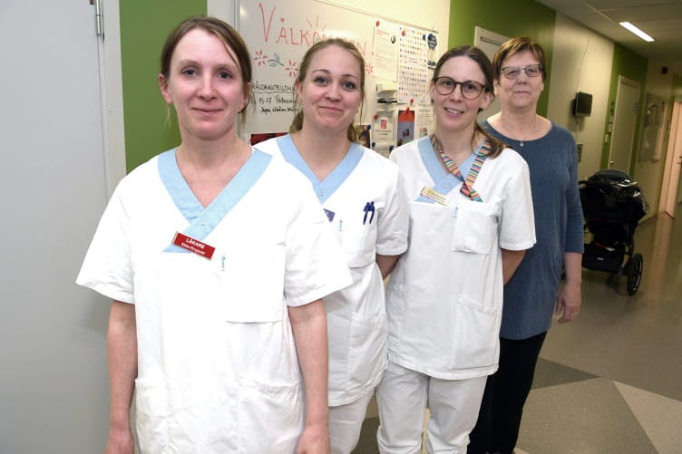 Ebba Ringqvist, ST-läkare, Rebecka Wennberg, sjuksköterska, Vilhelmina Lidström, sjuksköterska, och Marita Eriksson, enhetschef, på Laponia hälsocentral i Gällivare.