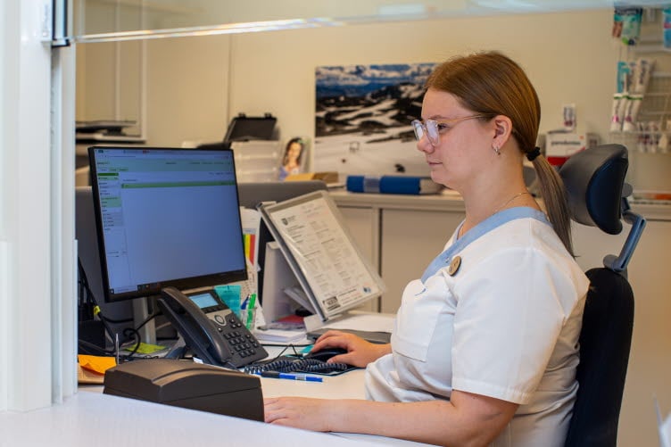 I receptionen får Tilde boka av och boka om patienter och ta betalt.